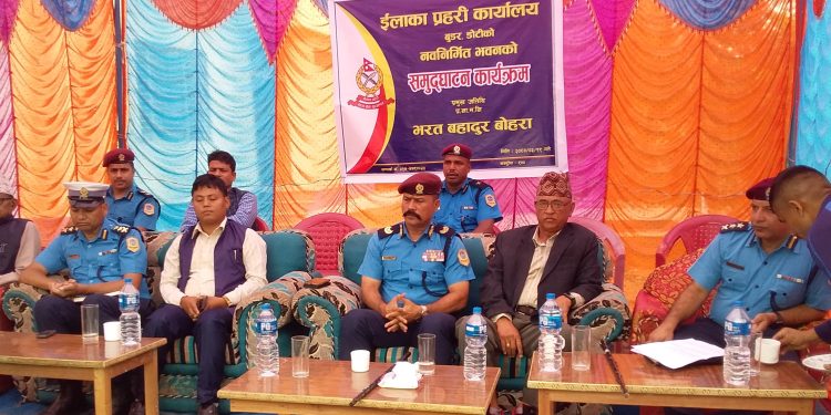 सुदुरपश्चिम प्रदेश प्रहरी नायब महा निरिक्षक भरत बहादुर बोहराले जोरायल गाउपालिका अन्तरगत वार्ड न.ं २मा रहेको ईलाका प्रहरी कार्यल बुडर डोटीको नयानिर्मीत भबन एक कार्यक्रमका बिच उध्घाटन गरेका छन ।