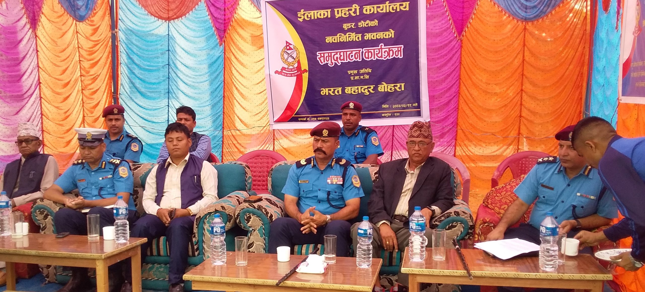 सुदुरपश्चिम प्रदेश प्रहरी नायब महा निरिक्षक भरत बहादुर बोहराले जोरायल गाउपालिका अन्तरगत वार्ड न.ं २मा रहेको ईलाका प्रहरी कार्यल बुडर डोटीको नयानिर्मीत भबन एक कार्यक्रमका बिच उध्घाटन गरेका छन ।